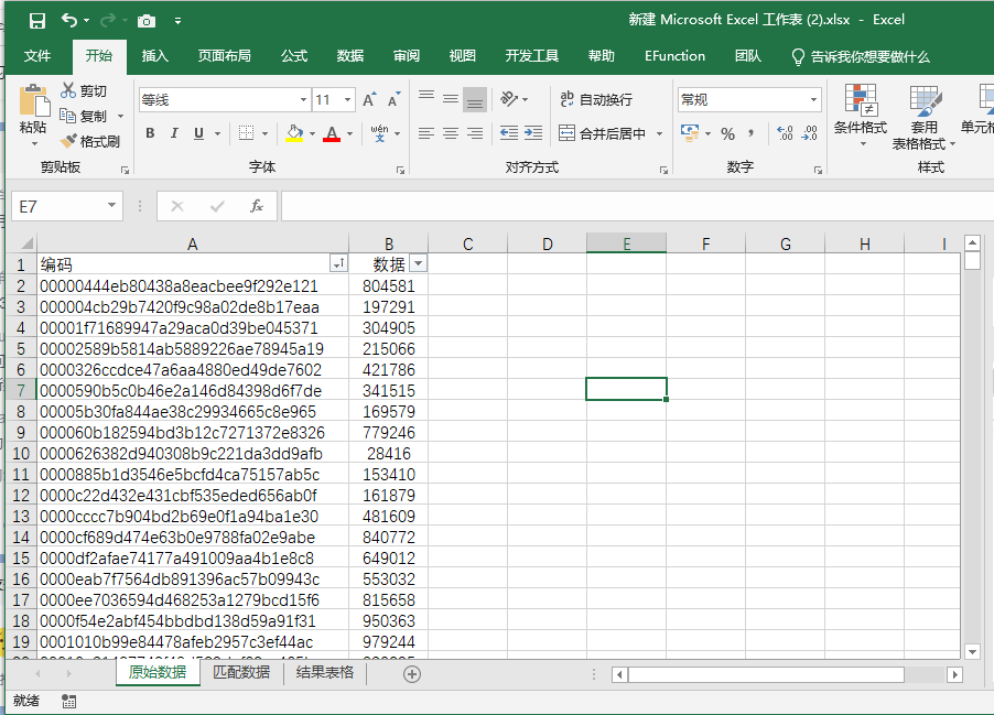 在Excel内模拟一百万条数据。在另外一张匹配表之中,需要将原始数据之中,相同编码的数据匹配到该表之中。因为数据体量比较大,使用VLOOKUP函数,完成该匹配工作,将耗费数个小时。如果使用Python来完成,只需要几分钟就能够解决。