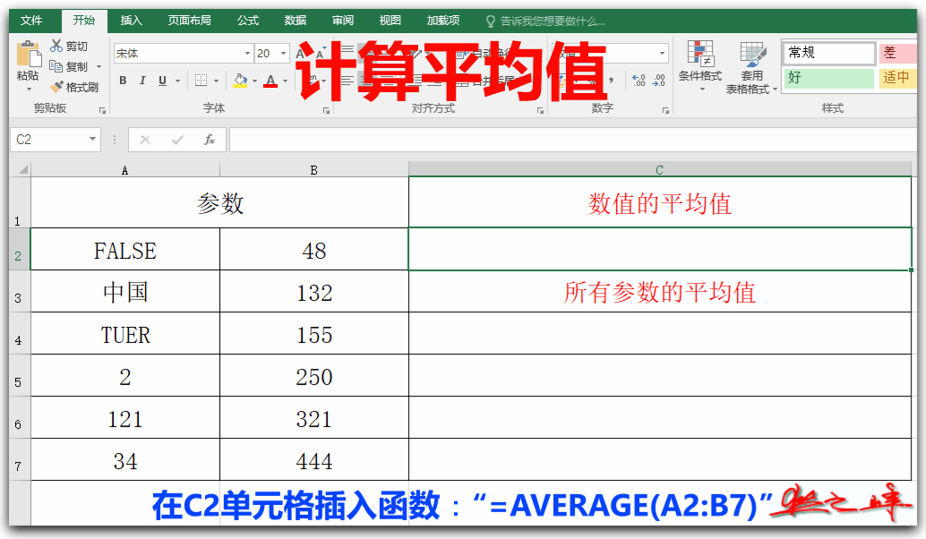 参数number1,number2,...是要计算其平均值的1到255个数字参数。