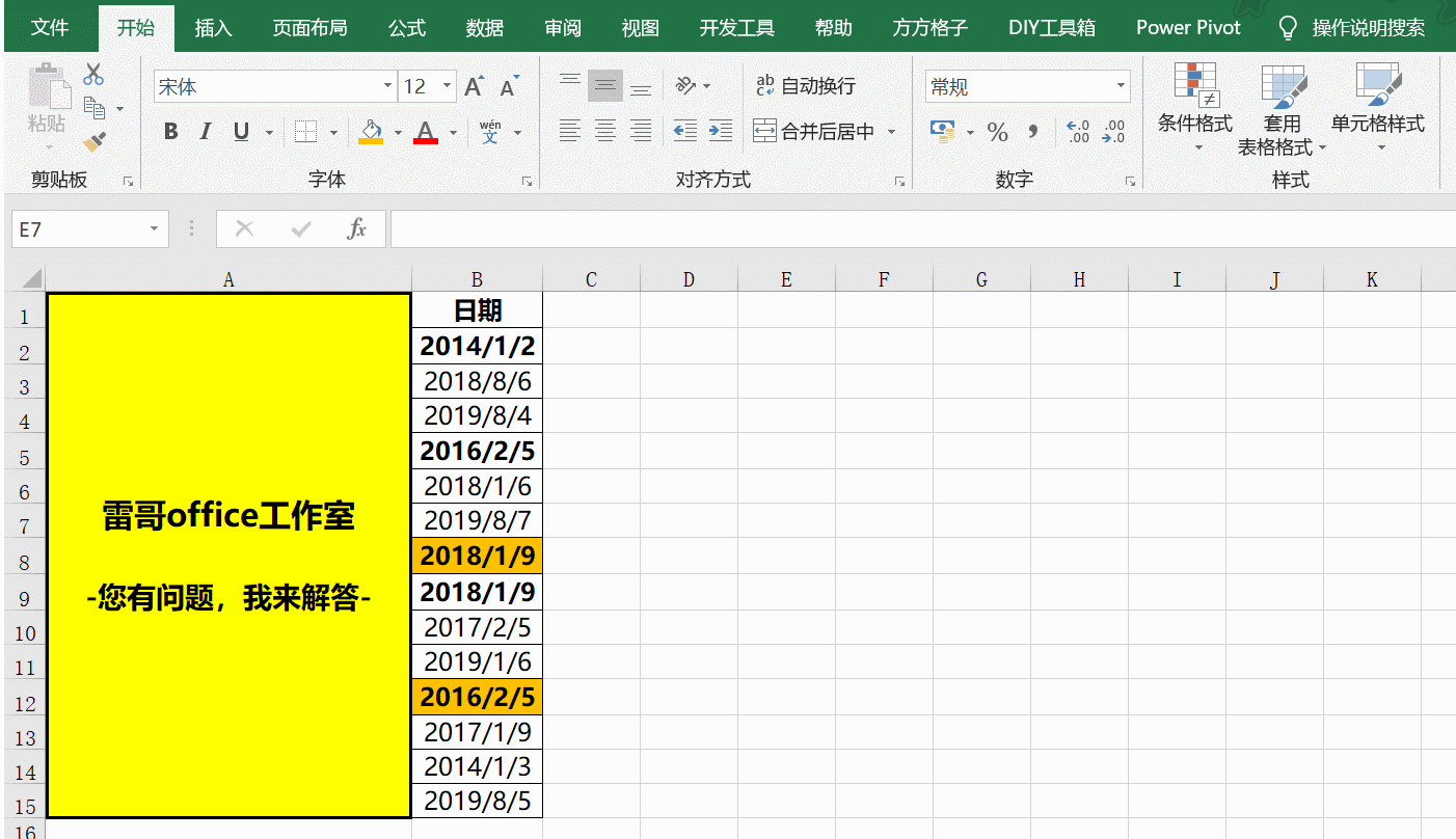 可以发下,E列的数据就是B列日期去重后的数据。是不是感觉很神奇呢?