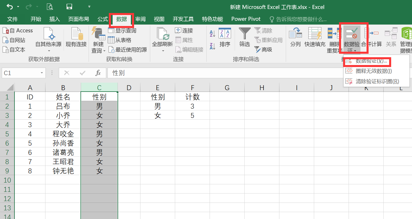 事情发现生,再来处理,总是痛苦的,我们最好在根源上消灭,我们对C列进行数据有效性设置,依次点击选项卡的数据,数据验证,数据验证