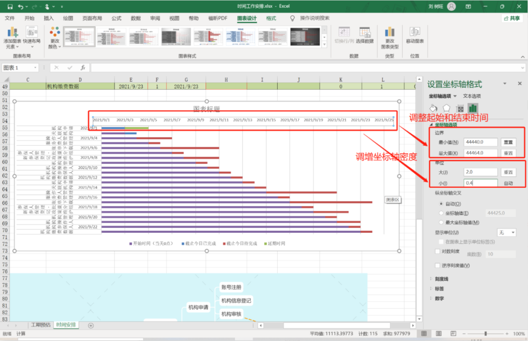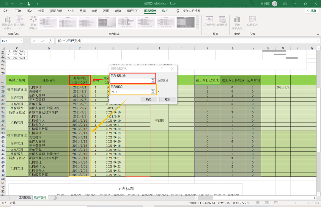 2)AD:截止今日已完成:=IF(NOW<=S,0,IF(NOW>EE,EE-S+1,NOW-S-1))