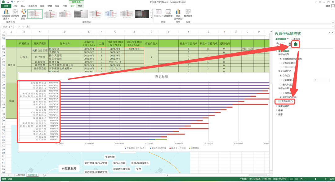 选中Y坐标项 - 设置坐标轴格式 - 逆序类别 :图标上下方向上进行翻转