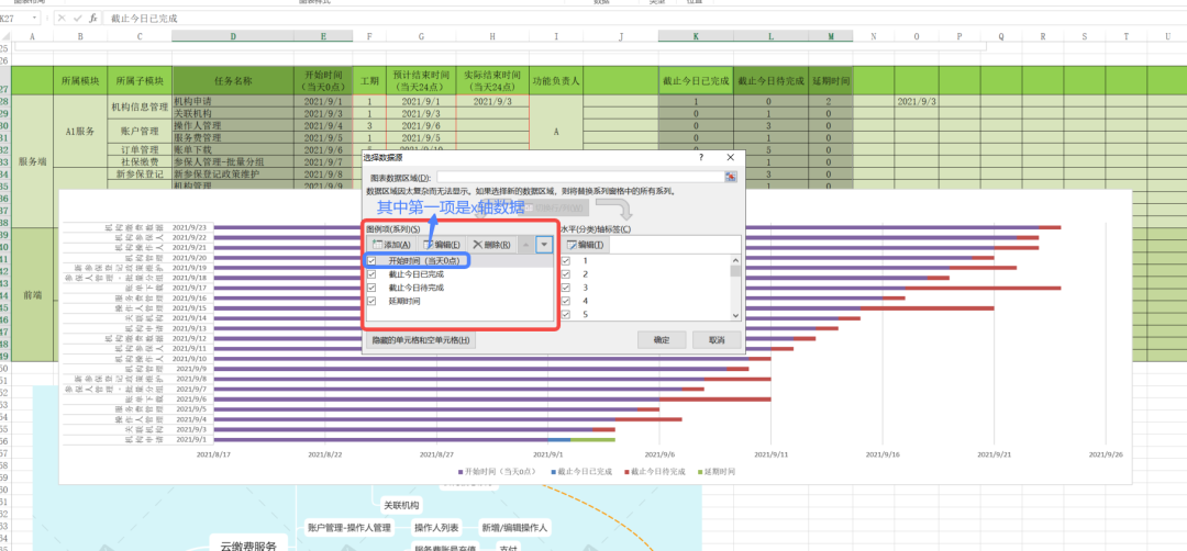 图表-右键-选择数据初始化数据由图表自动获取,可自主添加必要数据项(其中首项:X轴刻度值数据)