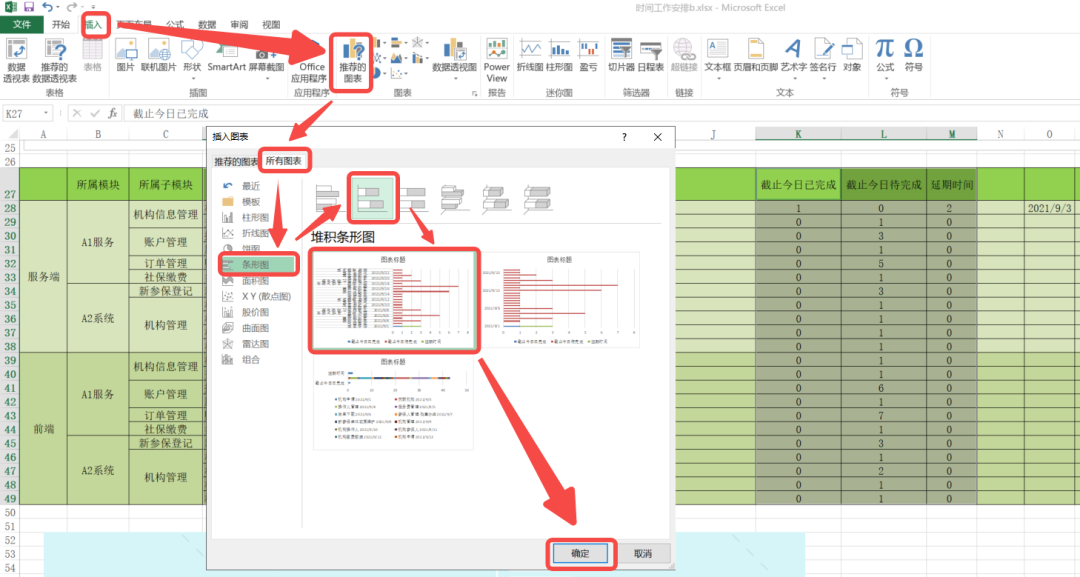 插入-推荐图表-所有图表-条形图-堆积条形图