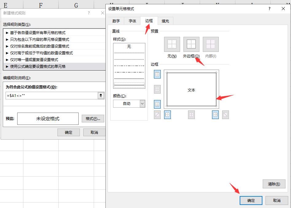 メ我们选择边框——勾选所有外边框点击确定。メ