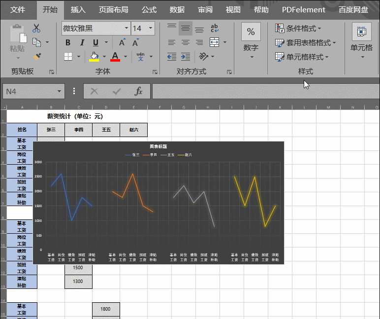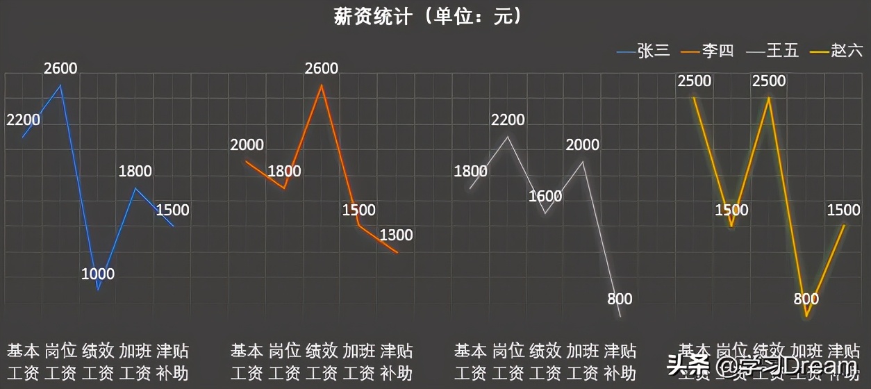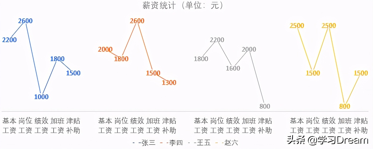那么,怎么理清头绪,对各数据折线进行横向分隔,制作成如下的图表呢?