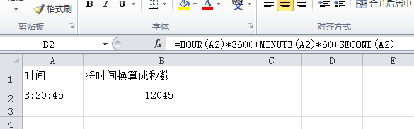 HOUR(时间)*3600+MINUTE(时间)*60+SECOND(时间):将时间换算成秒数。