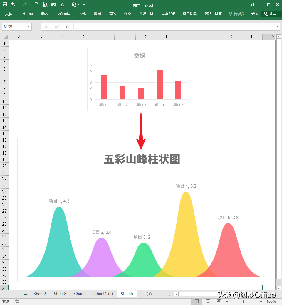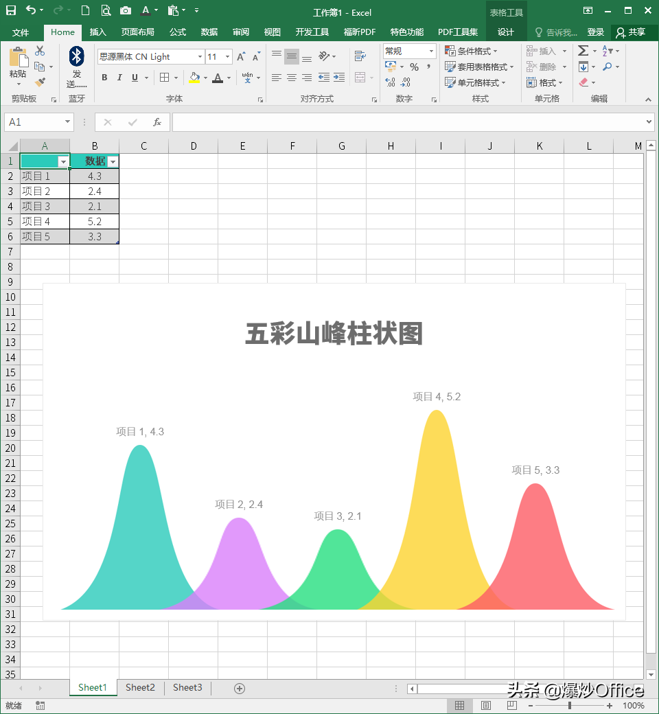 - 为的是体现颜色绚烂的山峰,所以简化图表元素,只保留标题、数据,以及标签。