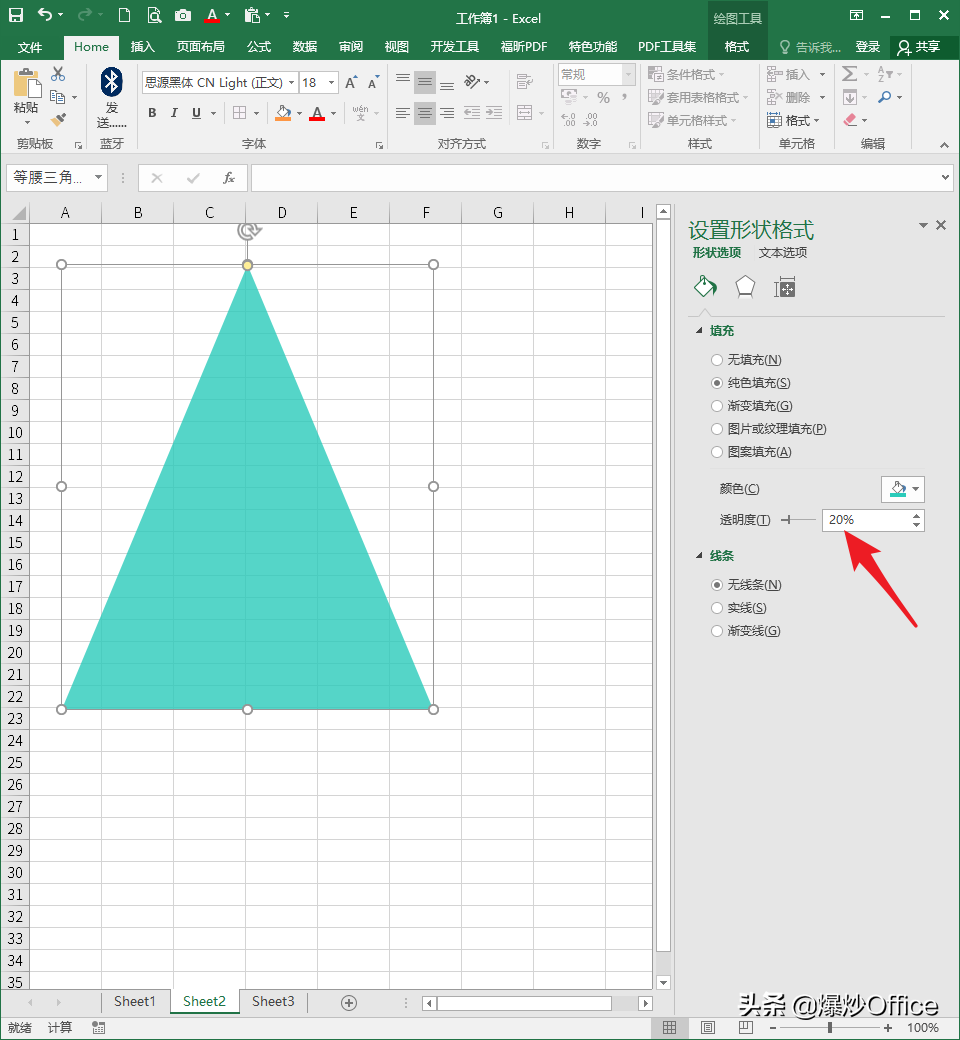 - 绘制一个三角形,设置填充色,并设置一定透明度。