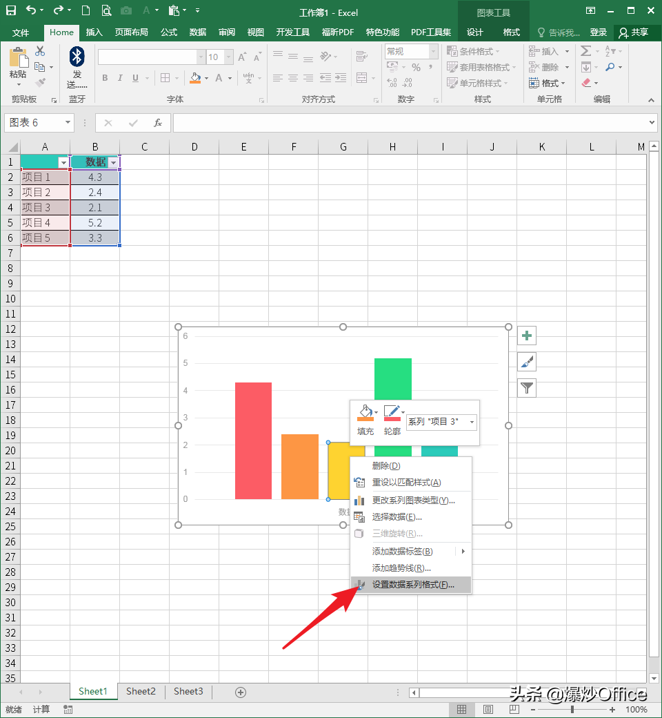- 在任意一个柱子上右键,点击设置数据系列格式。