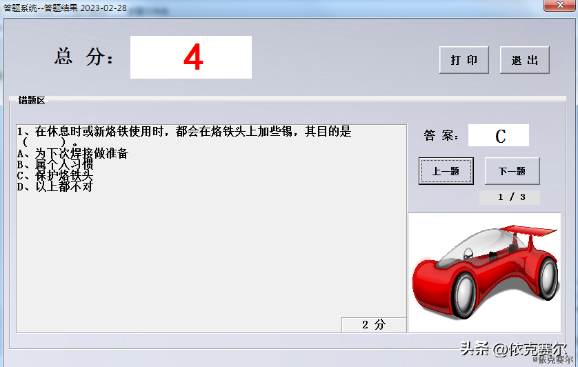 1.5 退出与打印:点击“打印”按钮,可打印当前窗体界面。点击“退出”可返回答题主界面。