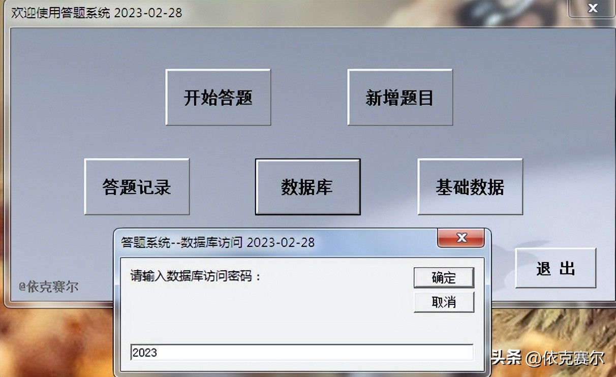 3、 数据库:在答题系统点击“数据库”按钮,并在弹出的对话框输入默认密码“2023”可进入答题系统的数据库界面。