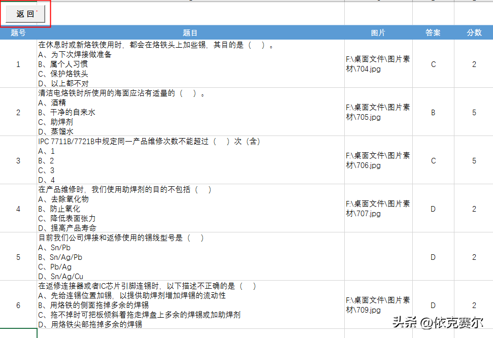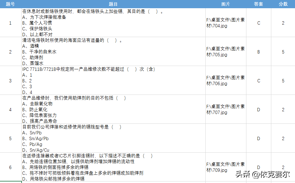3.1数据库信息:在数据库的工作表中可修改题目信息,题号为公式自动生成,不需要修改。