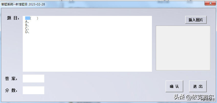 2、 新增题目:点击答题系统界面的“新增题目”按钮,自动打开答题系统新增题目的窗口。输入完对应信息后点击“确认”即可。