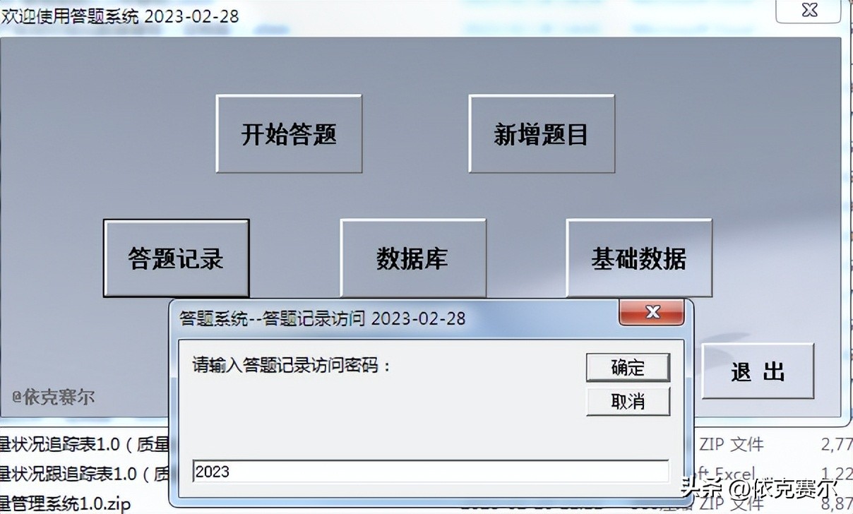 5、答题记录:在答题系统界面点击“答题记录”,并输入初始密码“2023”可自动打开该系统答题记录管理界面。