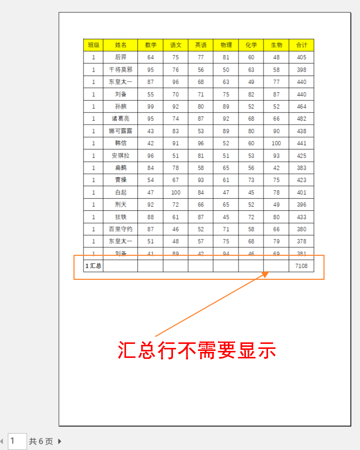 这就搞定了,按打印预览,就打印不出总计了,按班级每页打印出来了,效果如下所示: