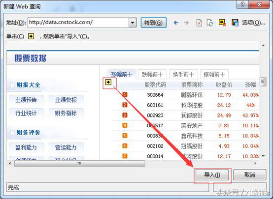 此时在对话框中会访问该网址,并在可以被导入的表格左上角显示一个图标,单击该图标,然后单击“导入”按钮。