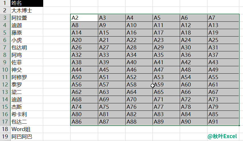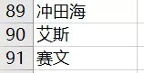 首先可以看到,姓名有 91 行,除去标题行,一共有 90 个姓名。
