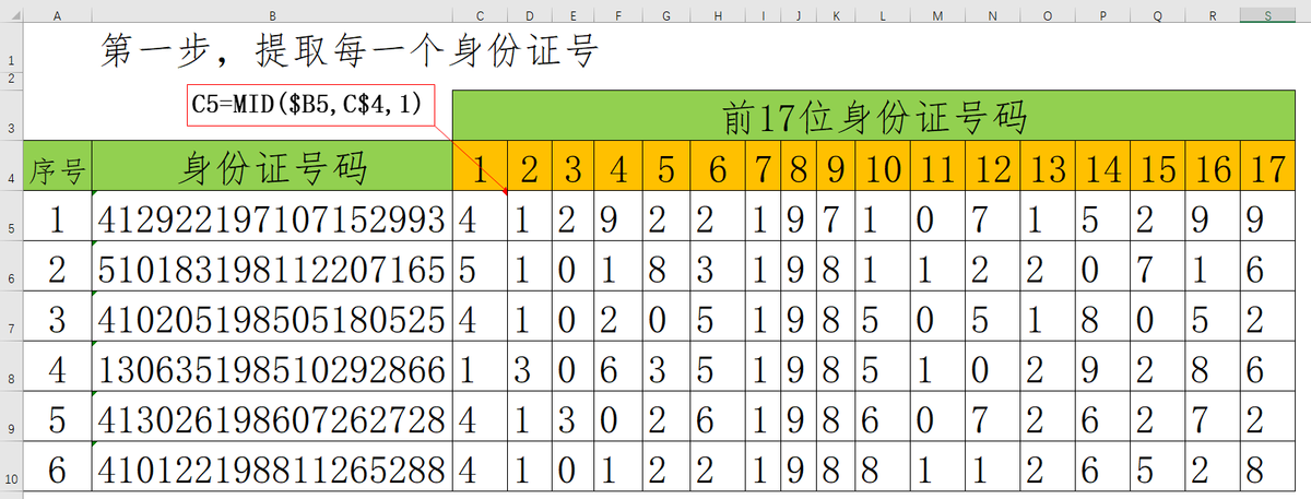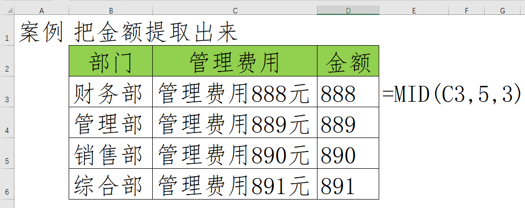 函数的意思:从一个文本字符串指定的位置起,提取指定数目的字符。