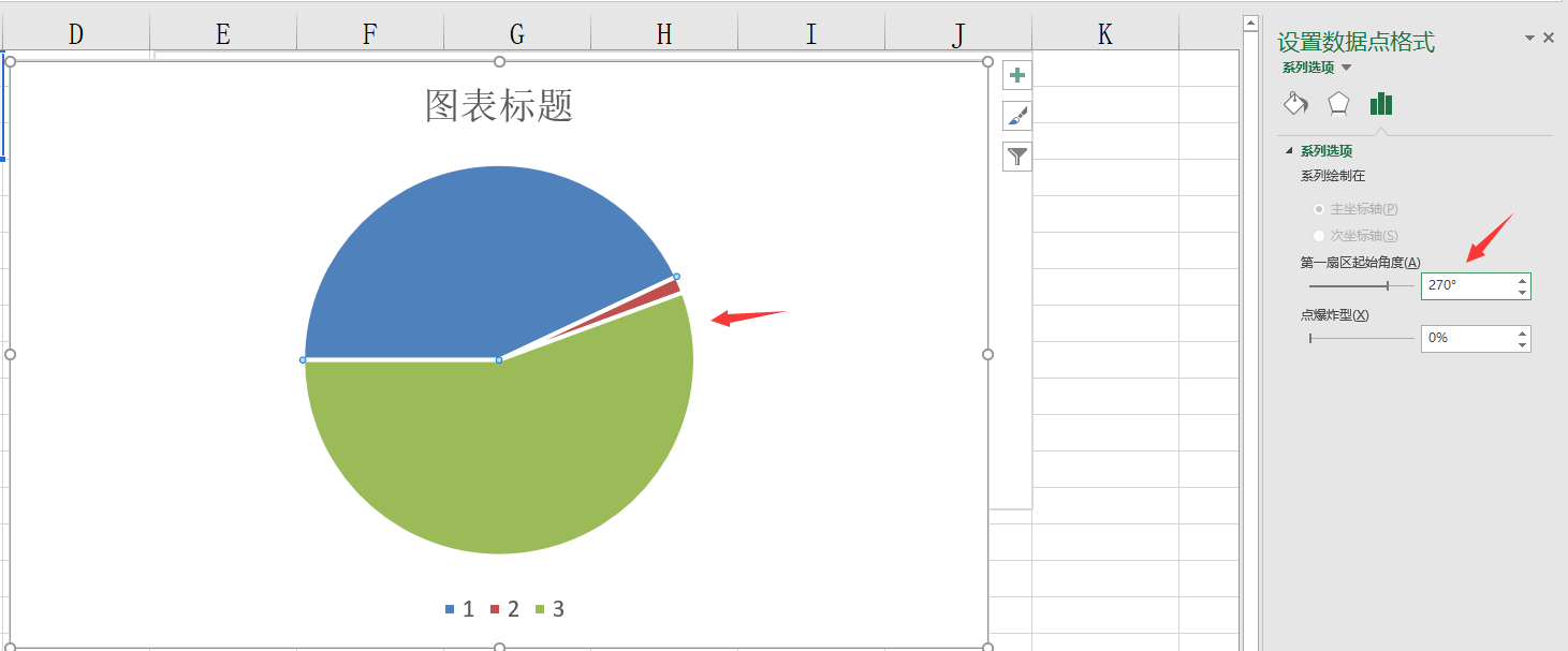 メ同理,将饼状区域设置为第一扇区起始角度改为270。メ