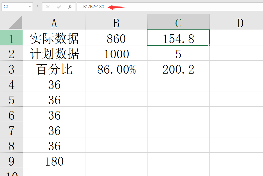 メ数据源设置指针图表,辅助公式=B1/B2*180,计算出相应的度数。メ