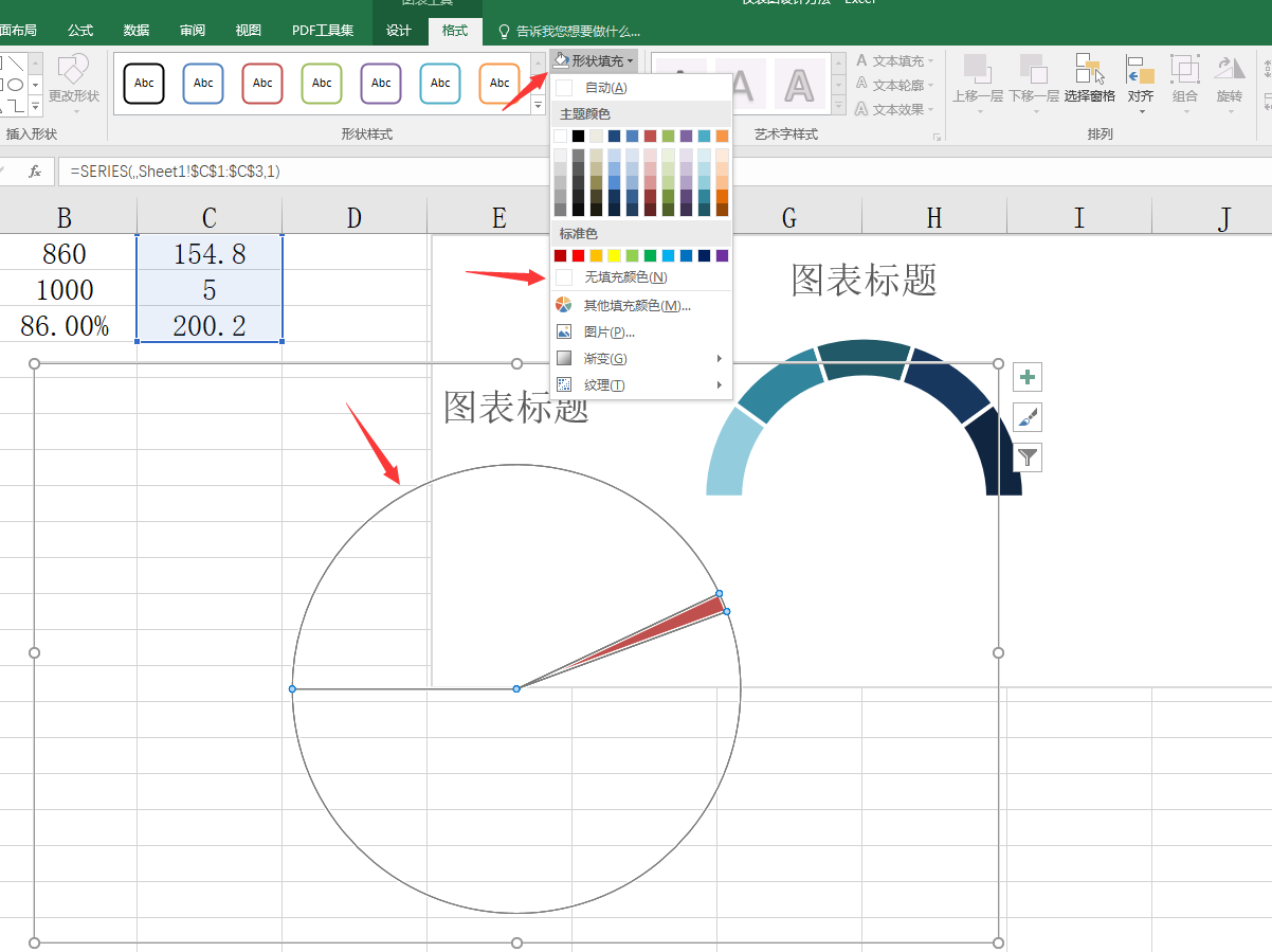 メ将饼图的背景,无效扇形区域等遮挡项目,全部设置为无轮廓无背景。メ