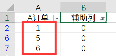 2、A在B中没有的订单号,在A表中筛选辅助列为0的内容即可