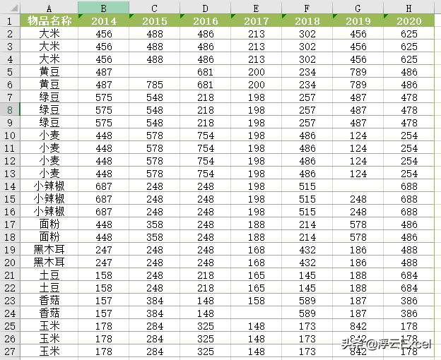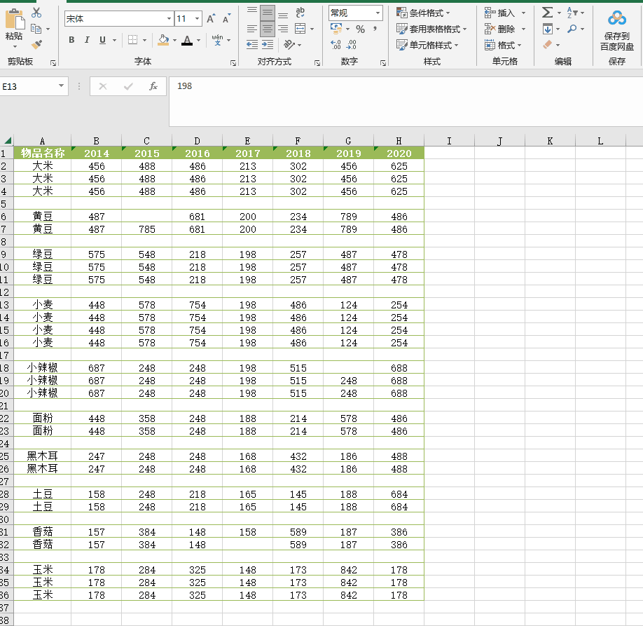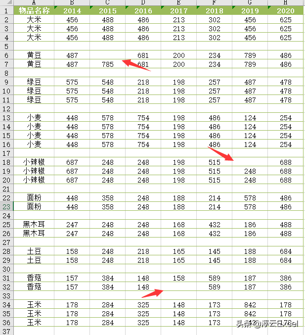 如果数据里面有空白的数据,那么上述的方法就不好用了。需要另外一个方法。例如下表: