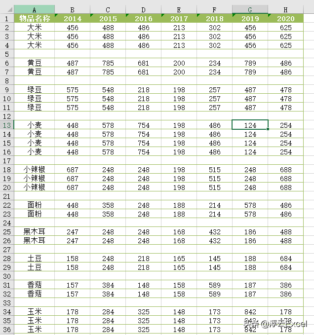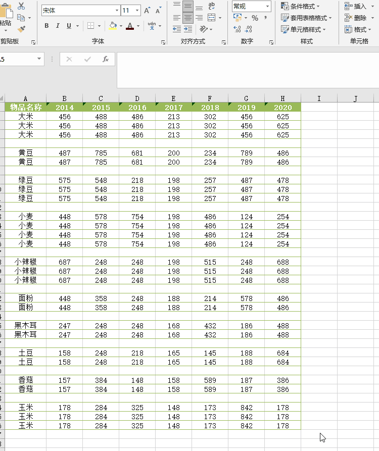 不同的物品名称需要用空白行隔开。形成下面的效果图: