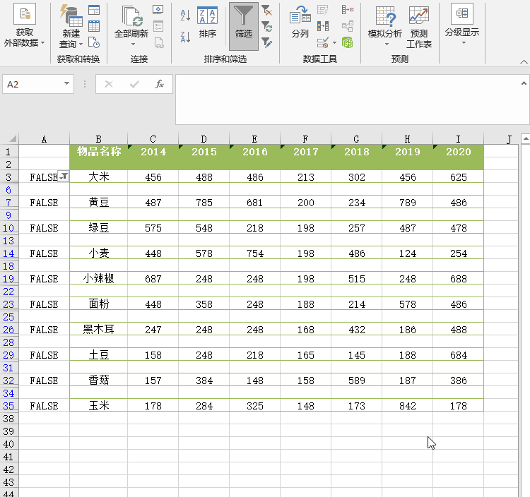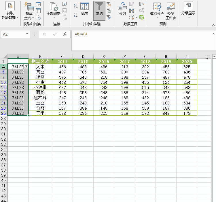 对FALSE与TRUE的值进行筛选,只保留FALSE的值。