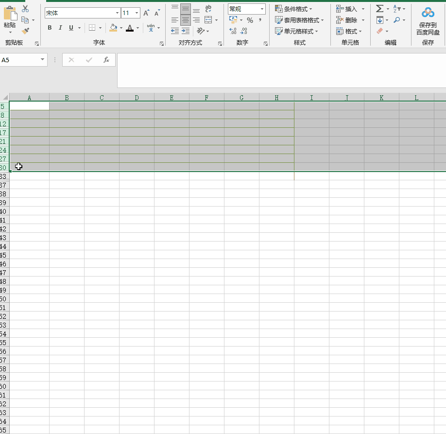 通过上述的操作,就可以选中所有的空白单元格。再依次选择"开始→删除→删除工作表行"。