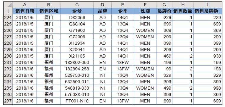 下面这张图为某公司 2018 年 1 月的销售明细流水账。
