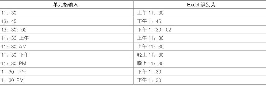 下面列出了Excel可识别的一些时间格式,如表所示。