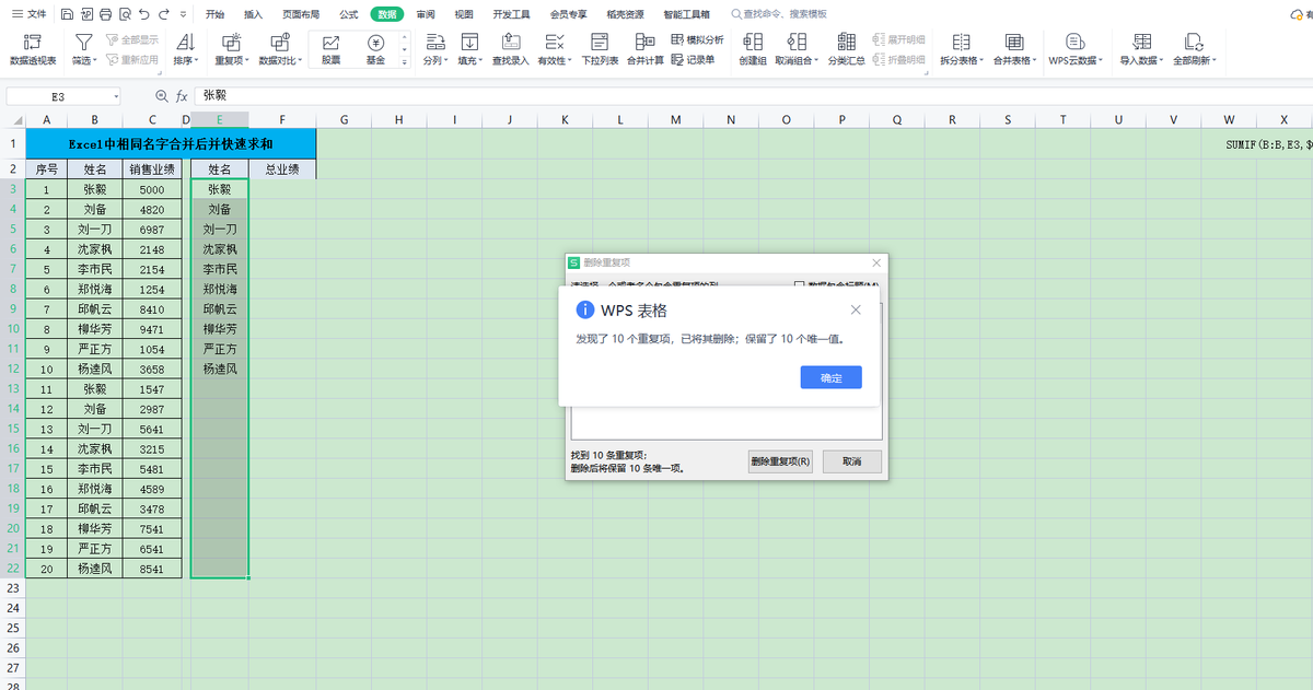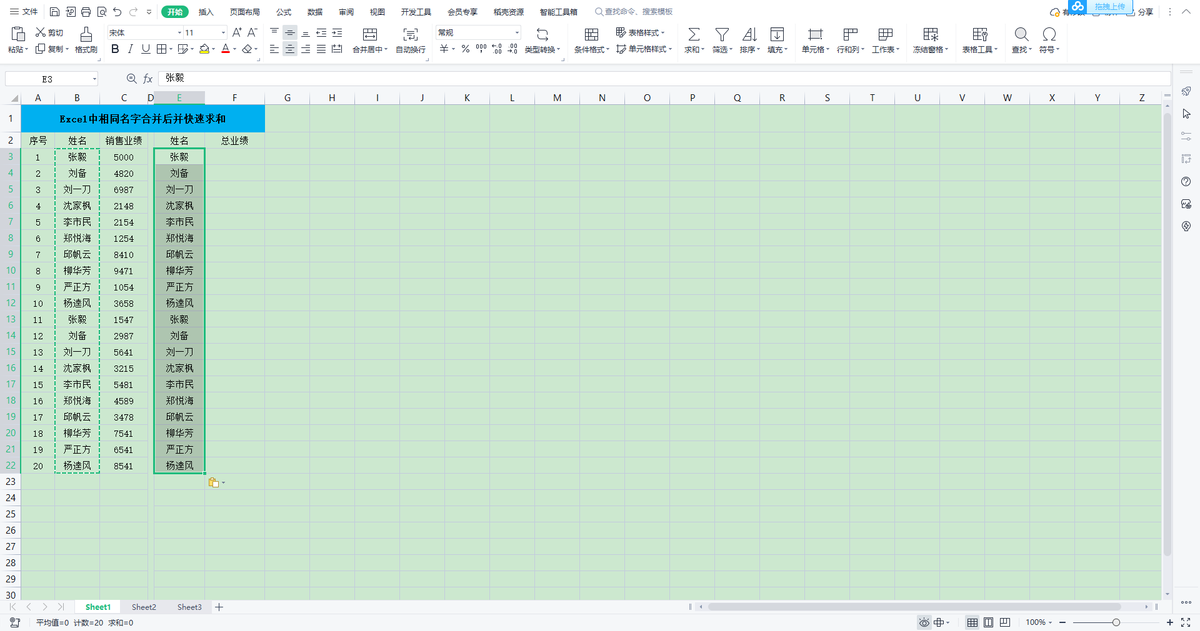 大家有没遇到表格中,相同的名字下,有多个数据需要我们将去重后,再进行求和的情况。小渔老师今天就教大家一招,快速将相同的名字合并后进行求和。