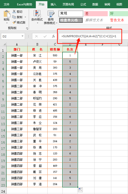 当老板看你这么快计算出名次后,又改了,各部门内进行排名次,怎么办呢?