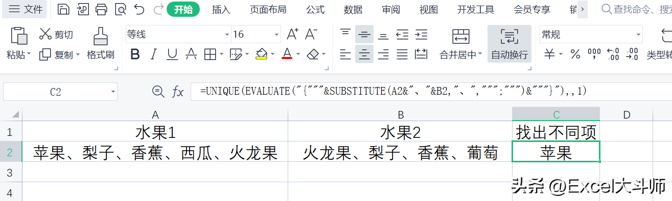 我们都知道UNIQUE是去重函数,但是它的第三参数应该很少人会用,下面来看一个案例,需要在两个单元格里找出它们互相没有的数据放一个单元格里