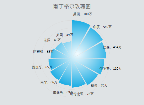 我们经常看到网上有关的南丁格尔玫瑰图,有人给出了利用圆环图、旭日图的做法。今天给大家介绍利用雷达图作图法。