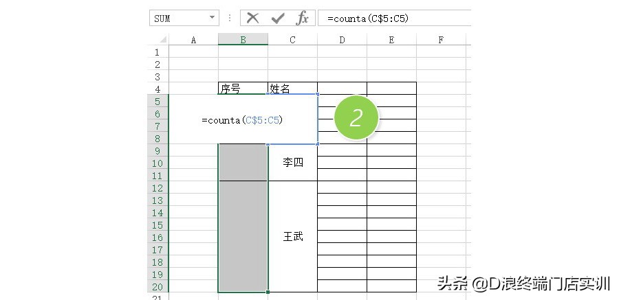 =counta(C$5:C5)下图2处