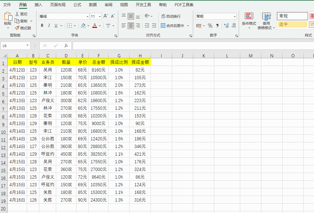 5:条件统计:公式:=COUNTIF(B2:B19,B2),如下图所示: