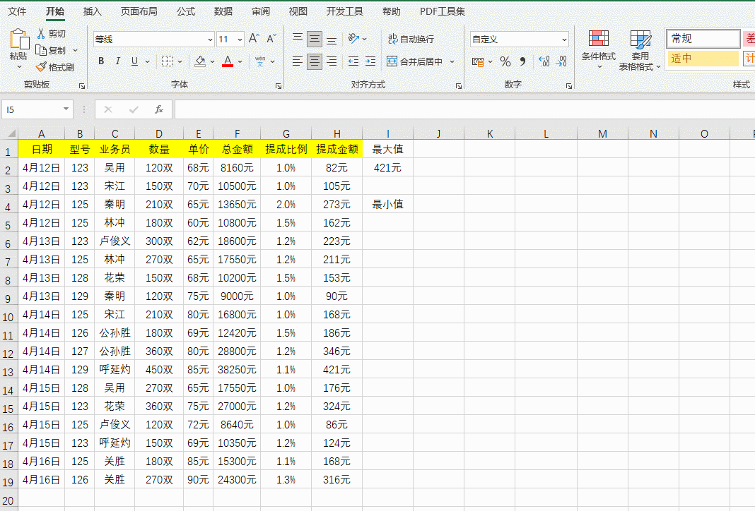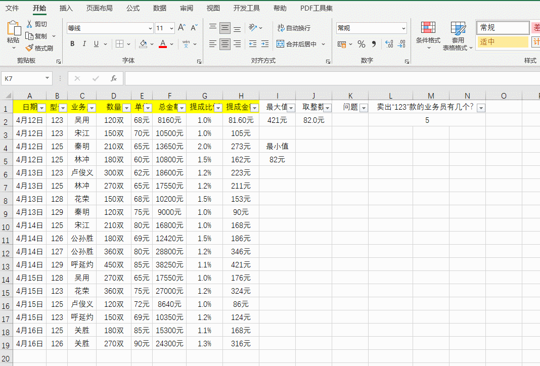 3:求最小值:公式:=MIN(H2:H19),如下图所示: