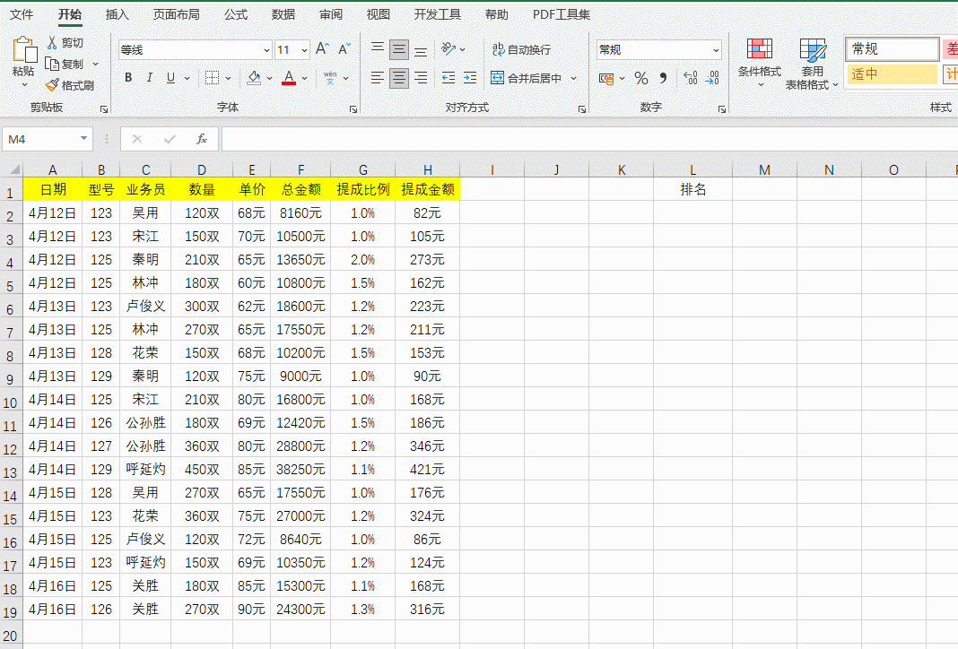 1:排名计算:公式:=RANK($H2,$H$2:$H$19),如下图所示: