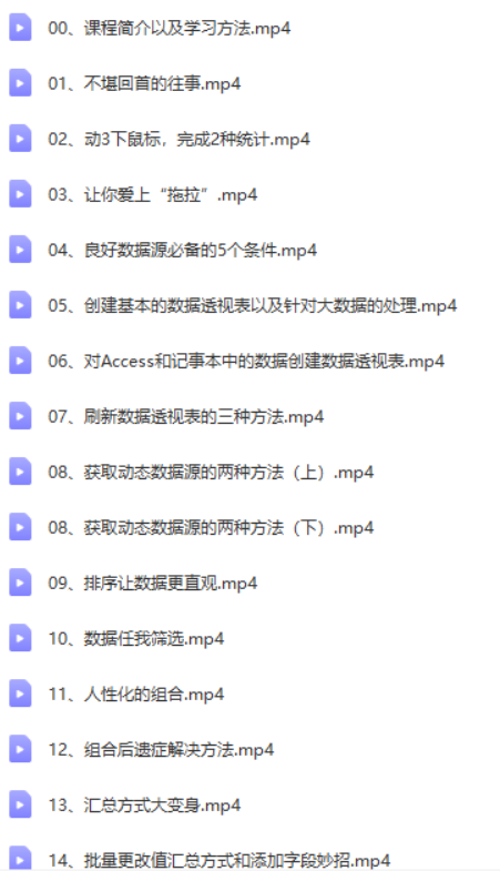 最后附上本次42集Excel数据透视表自学教程的全部内容领取方式: