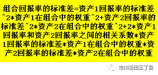 在这里要注意一点,整个投资组合的回报率=单项资产的回报率*该资产在组合中的市值占比,但风险值并不等于组合中单项资产的风险值简单相加,而是要考虑各项资产的回报率之间的相关系数,具体的计算公式如下: