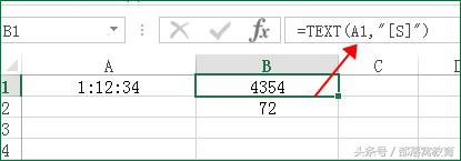 如果我们要换算成秒,公式为:=TEXT(A1,"[S]");如果换算成分钟,公式为:=TEXT(A1,"[m]")