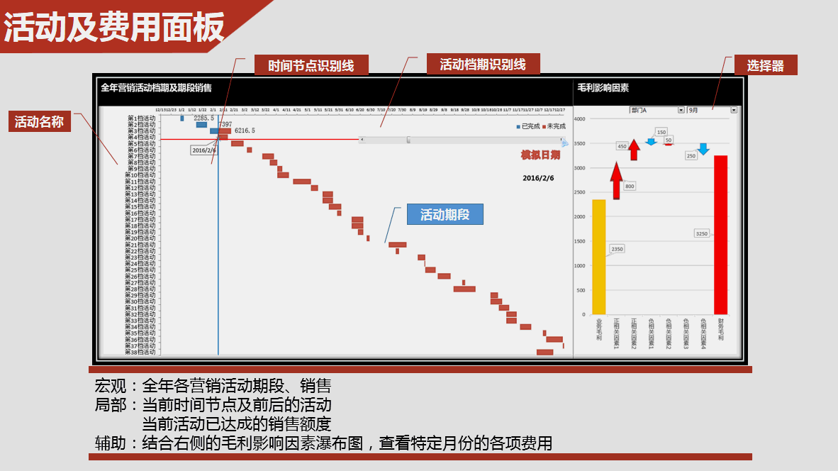 活动面板的最大价值,是弥补了ERP系统没有营销活动跟踪的功能,其自带的两条识别线,起到了聚焦和指示功能。