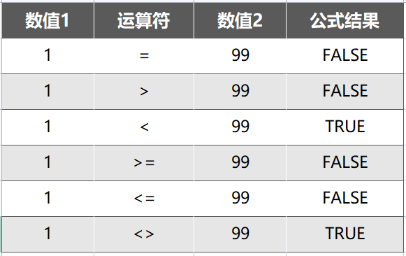 包括=、>、<、>=、<=、<>等,用于比较数据的大小或异同,返回的结果是逻辑值TRUE(对)或FALSE(错)。