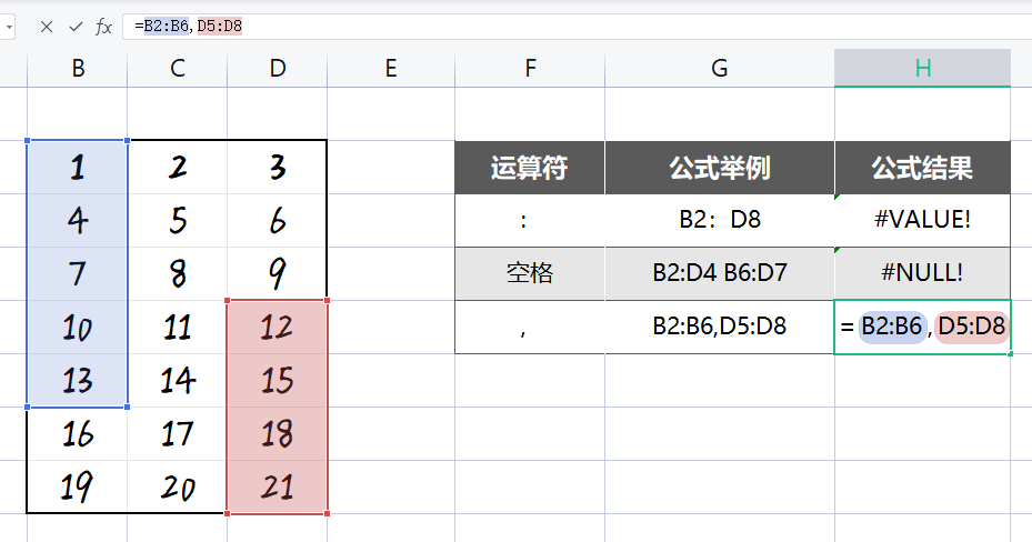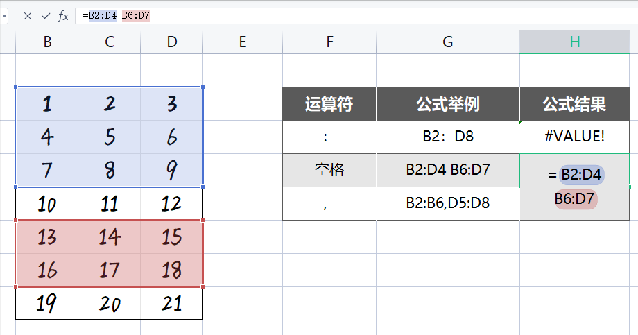 冒号(:)、单个空格( )、逗号(,),返回的结果是工作表的单元格引用。