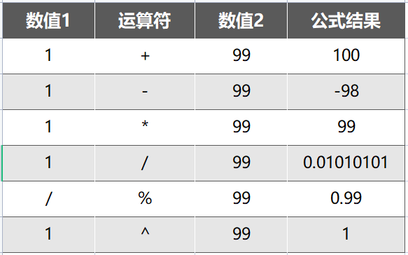 可以完成加、减、乘、除、百分比等算术运算,返回的结果是数值类型的数据。