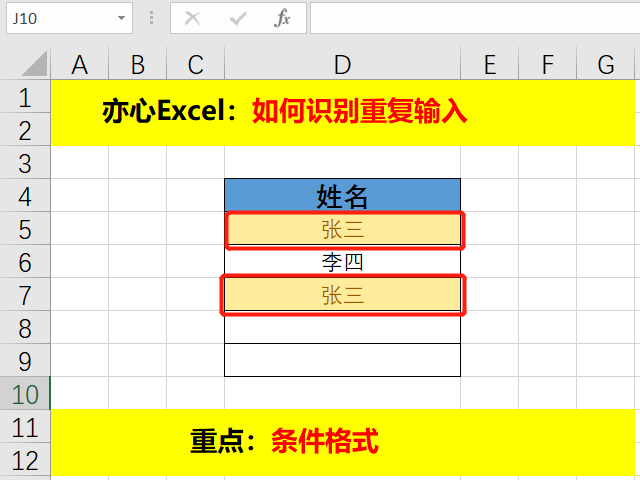 设置好以后,当我们输入重复值时,单元格就会自动变为黄色背景,文字颜色也变成了深黄色。