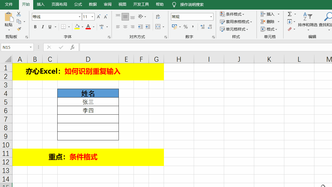 我们可以通过条件格式进行设置,当输入数据重复时候,把重复数据进行特殊格式设置,比如填充单元格背景色,修改字体大小颜色等等。